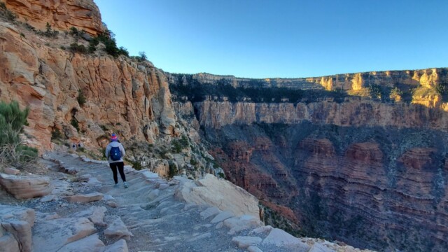 After our tour of the Flagstaff Brewery Trail, we started the hour journey north towards the Grand Canyon. Based on our research we took a slight detour towards Cameron Trading Post for Navajo Tacos. Definitely worth the detour, navajo tacos are made with fluffy fry bread topped with beans, beef, lettuce, tomato and lots of cheese! From Cameron’s we headed west towards the Desert Watch Tower and Grand Canyon entrance. In my plans, we would be there in daylight, however, our stop in Flagstaff lasted longer than anticipated so we drove in the dark and saw the Canyon for the first time as the sun rose. Now there’s not much that I can say about the Grand Canyon that you probably haven’t already heard. It’s beautiful, awe inspiring, breathtaking and you have to see it in person to appreciate its beauty.